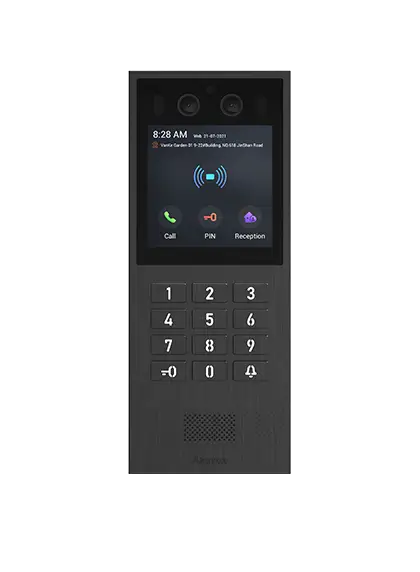Akuvox SIP Doorphone w/ Phys. Keypad, Face Rec, RFID, NFC, QR, & BLE 5, Tarnish, Linux, 4″ (480×480) Touch LCD, 2MP 2.95mm WDR Main Cam, ONVIF, H.264, Wiegand, OSDP-in, 3/2 Relay I/O, Mic/Spkr, IP65, IK08, 1x FE (PoE+), 12VDC/2.5A In, 12VDC/0.7A Out